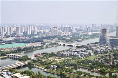 站在运河商务区的邮储大厦高层向外眺望,五河交汇的壮丽风景尽收眼底。截至目前,运河商务区已建成172栋楼宇,高度100米以上的楼有33栋,高度200米以上的楼有4栋。未来,城市副中心还将有更多摩天大楼拔地而起,大运河畔将迎来“千帆竞发 万商云集”的盛景。